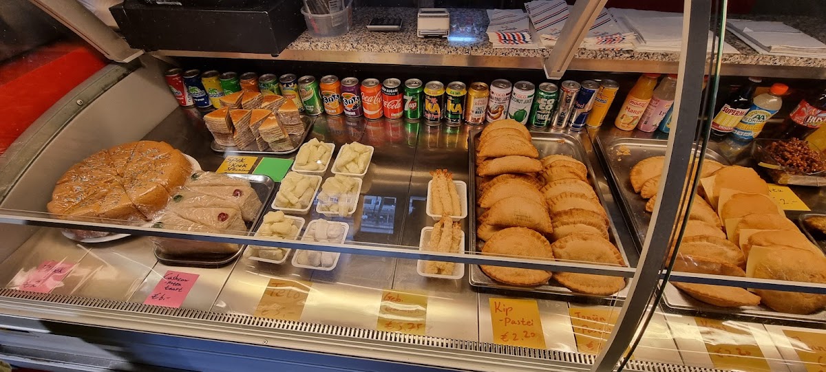 Small shop, it can go unnoticed at first. They accept credit and they do speak English, but the menu is in Dutch, so keep that in mind. Fast, cheap and home-made. I paid 8.50€ for a chicken liver sandwich, a tuna empanada, and a can of ginger soda. The empanada and the sandwich were outstanding! 10/10 There wasn't any place to sit down, but there's plenty of beautiful parks nearby to enjoy your meal. Just be careful with the seagulls :P